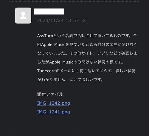 親しいアーティストに、以下のようなことが起きている。 ディストリビューション(配信代理)サービス・TuneCoreを用いて楽曲配信をするアーティストの複数名が、Apple Musicでの配信を停止される。 TuneCoreに問い合わせると、Apple Musicが「楽曲の再生回…